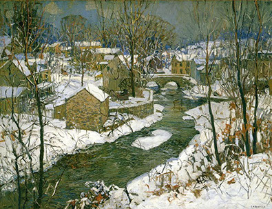 When she passed away in 1951, Fern Coppedge requested a simple Christian Science memorial ceremony. She was cremated, her ashes merged with the familiar flowing waters of the Delaware River which she lived next to and painted for 40 years in Lumberville and New Hope. Painting along the Delaware was a permanent assignment for all seasons, but especially in her favorite season: Winter.